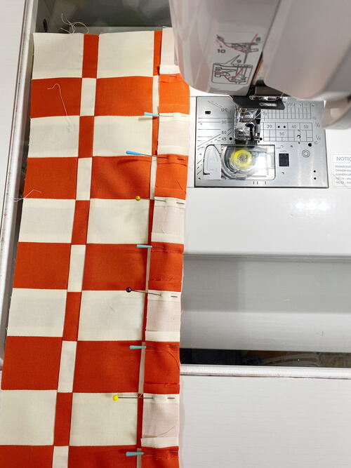 Your finished panel will start with one color and end with the other. This is really important when it comes to sewing the checkerboard pattern. -