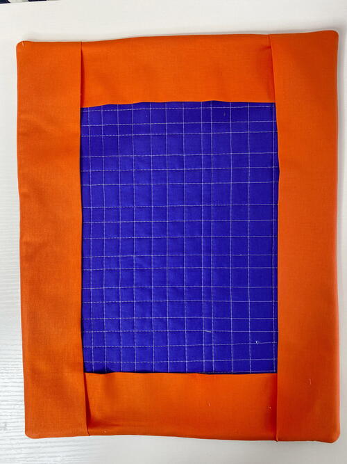 Make a quilt sandwich and quilt the piece to your liking. I used a cross-hatch design to mimic the piecing.