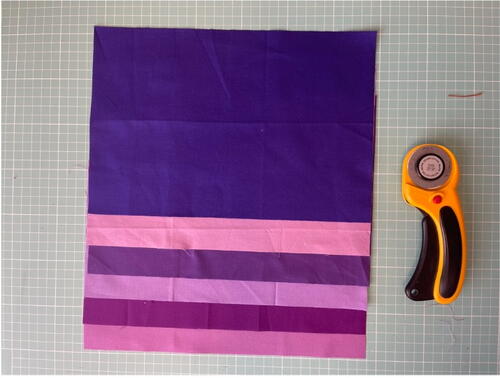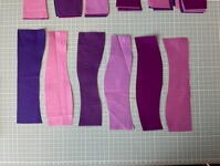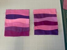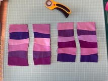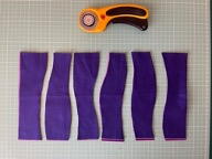 Stack your six fabric rectangles. With your rotary cutter cut 5 freehand gentle curve (it is key to use a new blade).