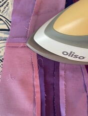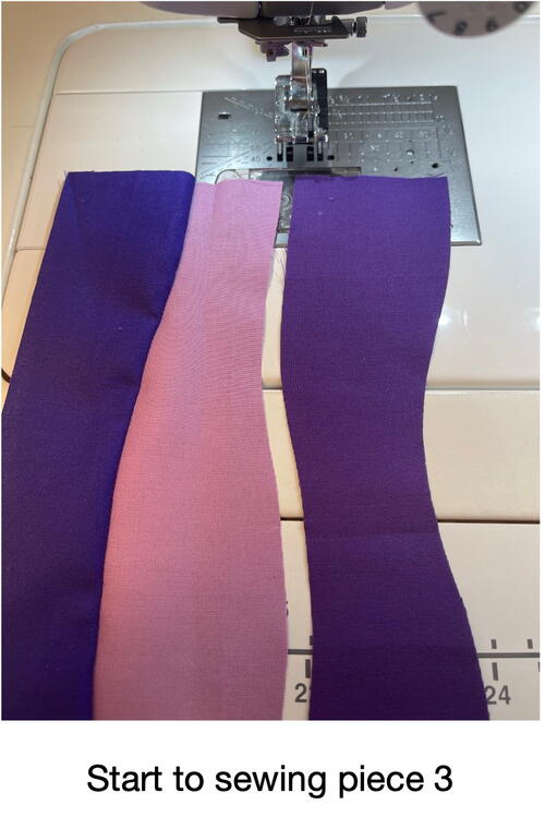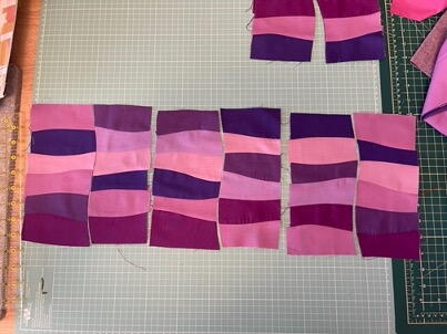 Once you sew the 6 curve strips of your first block, Press seams open, and repeat this process with the next block, until you finish sewing the 6 blocks.